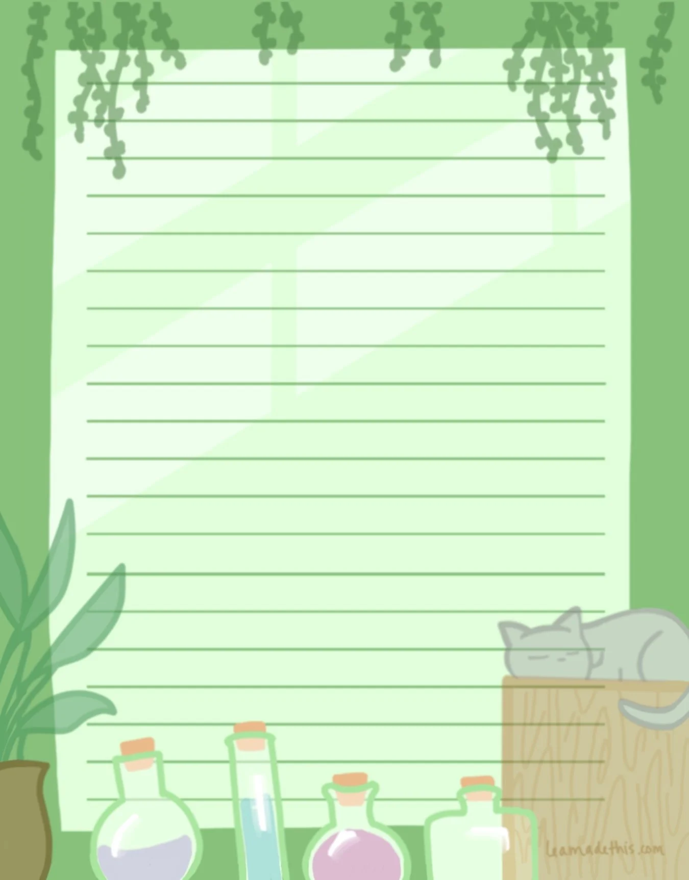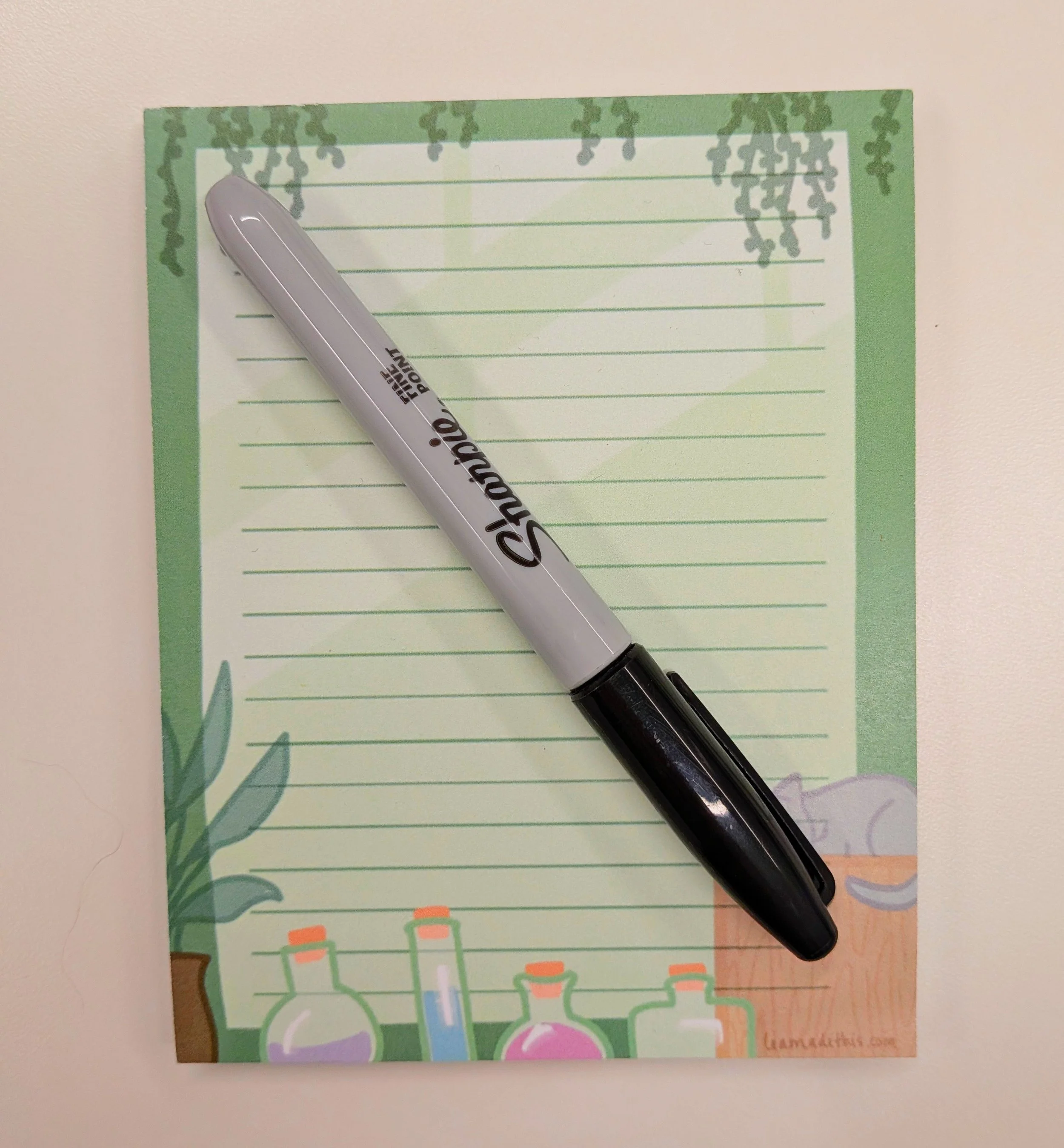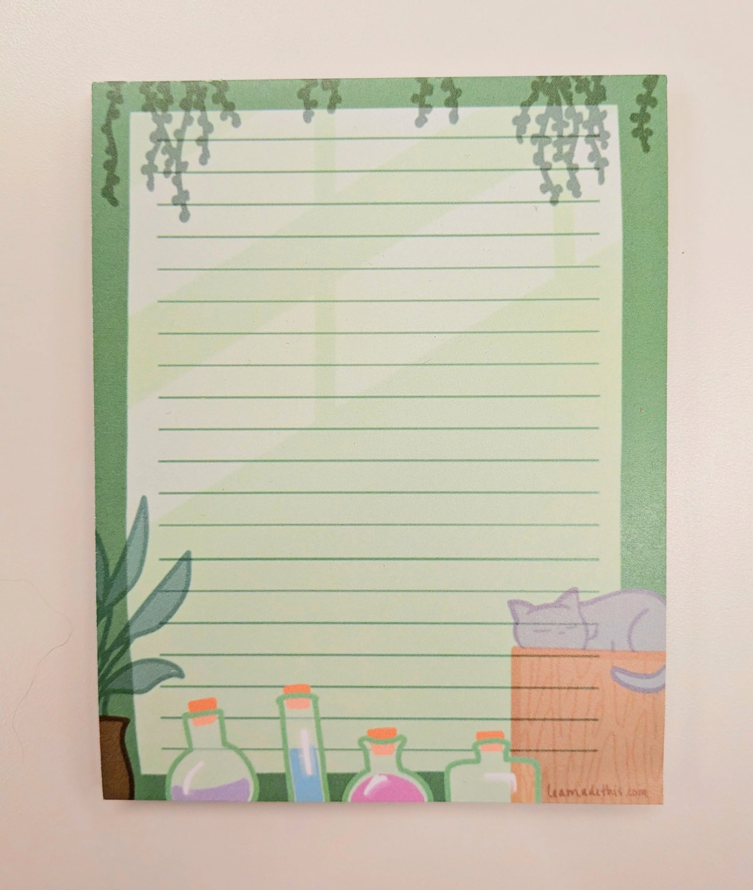 Printed on sturdy 70lbs paper, each notepad stack contains 50 pages of apothe-kitty cuteness.