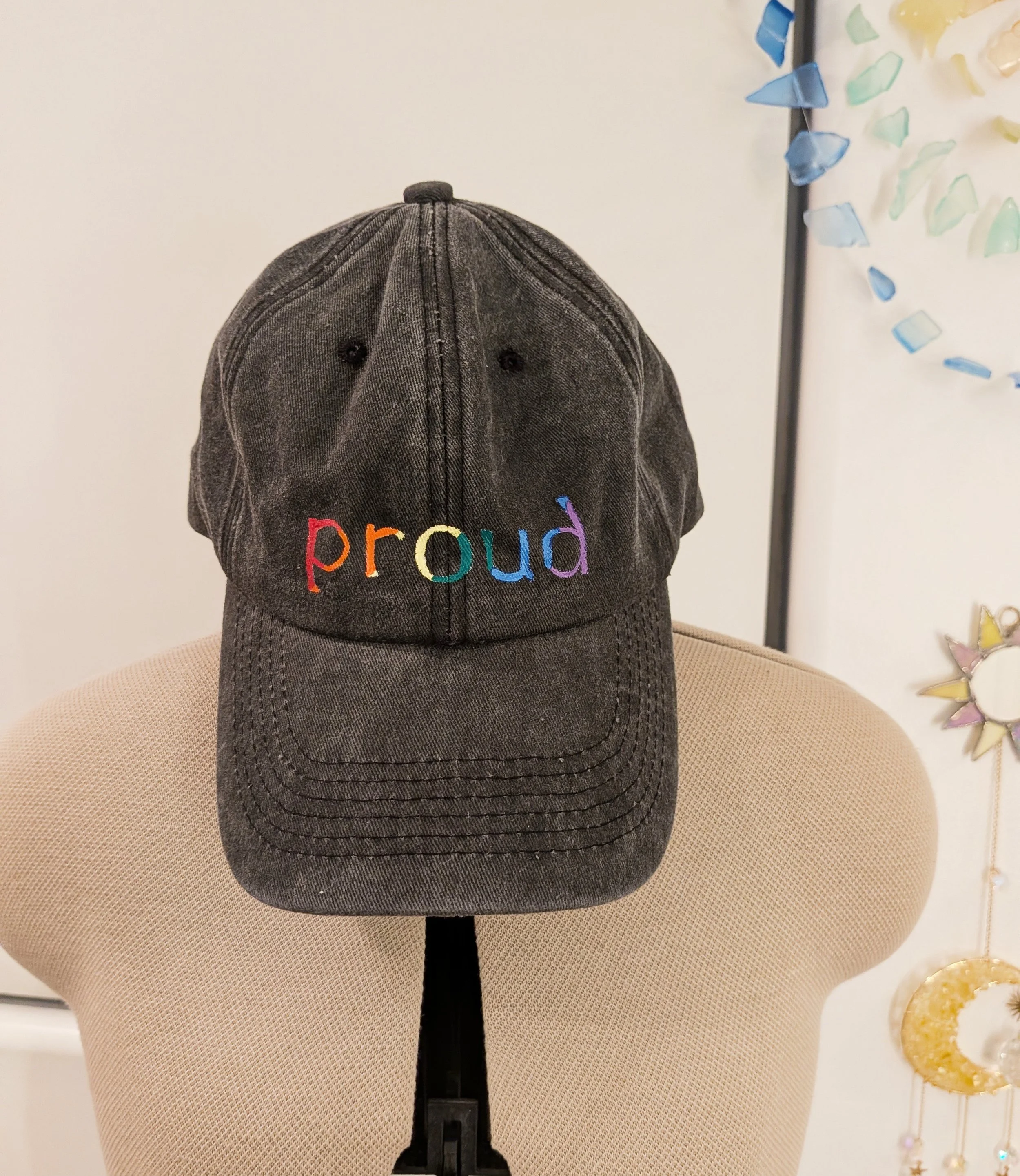 Shop › proud ballcap Image 1 of 1 proud ballcap $20.00 Only 1 available This handpainted ballcap features an adjustable band and weathered fabric finish. Add To Cart Added! This handpainted ballcap features an adjustable band and weathered fabric finish.